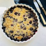 En blåbærcrumble der kombinerer det bedste fra begge kageverdener. Det søde med det sprøde. Den sprøde crumbletop med de søde og bløde blåbær er et lækkert miks og heldigvis er opskriften samtidig nem at lave. Så den her blåbærcrumble er en perfekt kage til de dage, hvor du får lyst til en sød dessert eller får gæster til kaffe og kage. Den skal nok bringe lykke på kagebordet.